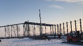 据了解,此项目是省内的一个粮食仓储基地,总计10万平,承载量40万吨。如此规模,从设计生产到施工安装却只有50天。时间紧,任务重!为此,超凡国际钢构自与甲方确认后,迅速反应,抽调施工队伍400人,*短时间内开赴施工地点。安装地脚螺栓,安装墙面檩条……零下20余度的冰雪环境中,超凡国际施工队伍不惧严寒,在如此恶劣的条件下严格按照制定计划完成施工工作。