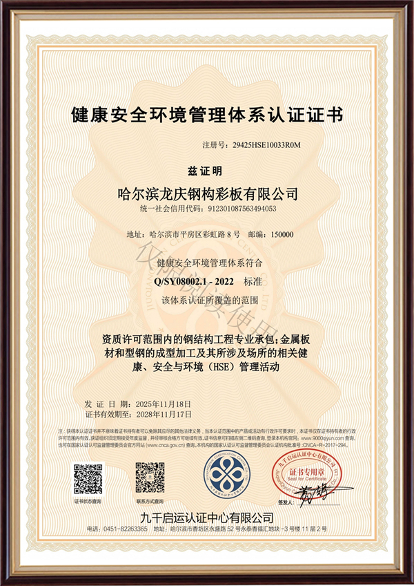 建筑安全环境管理体系认证证书